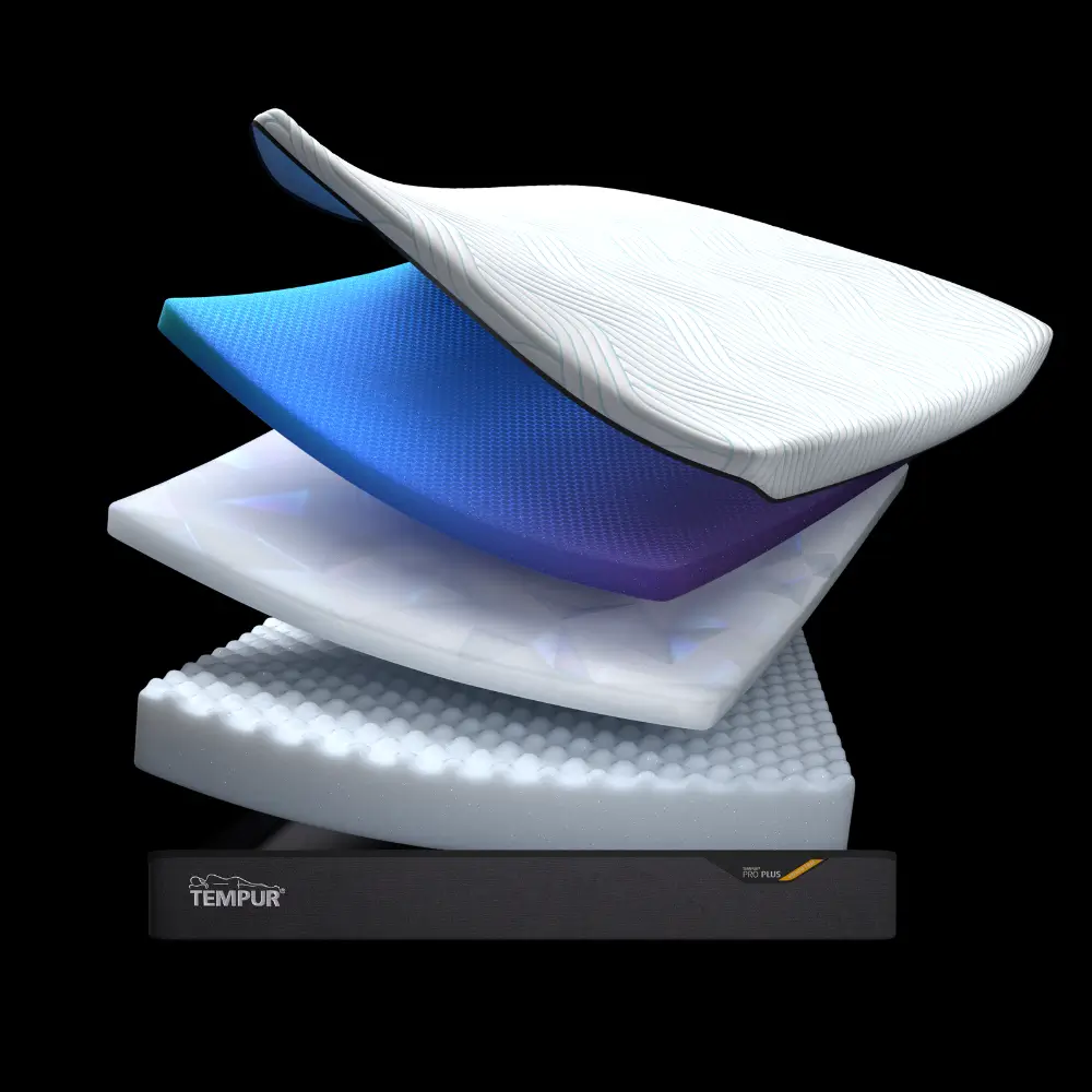 At 25cm in mattress height, the TEMPUR Pro® Plus represents our bestselling mattress model for good reason. This premium hybrid construction features increased TEMPUR® Material content combined with responsive spring support that adapts for superior conforming support and enhanced comfort. The substantial mattress thickness ensures long-lasting durability and exceptional sleep quality, making it the perfect choice for those seeking proven comfort and cooling performance.